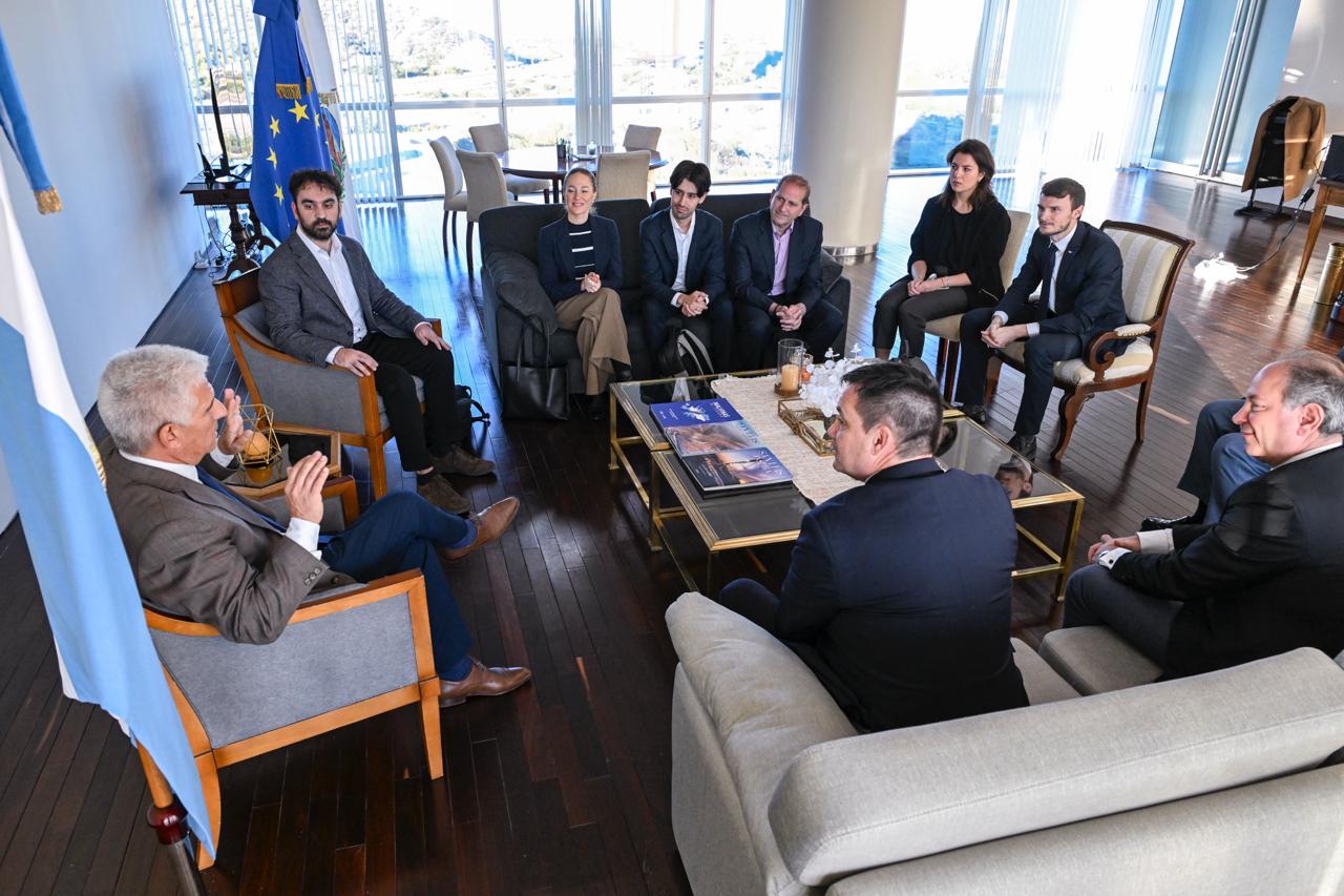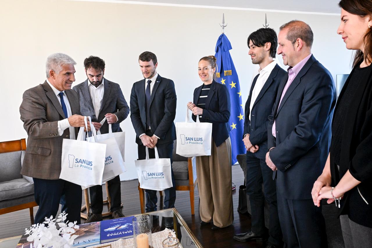 Este lunes, el gobernador Claudio Poggi recibió en su despacho a miembros de la delegación de la Unión Europea en la Argentina y también a los de la secretaría de Innovación, Ciencia y Tecnología de la Nación: el director nacional de Gobierno Abierto, Julián Echandi; el director de Servicios Basados en Datos, Alen Carbajal; y la asesora en Cooperación Internacional de la dirección Nacional de Planeamiento y Asuntos Internacionales, Delfina Candi Tormos.