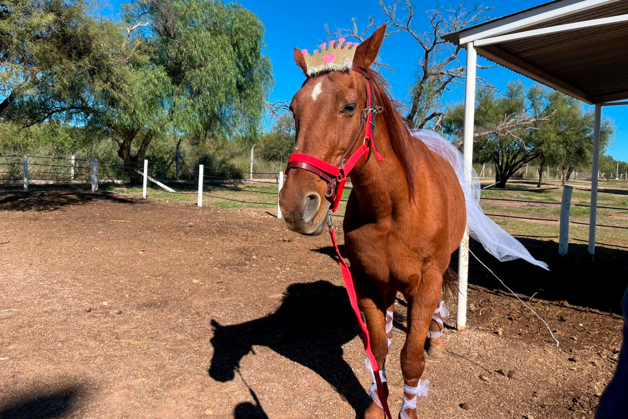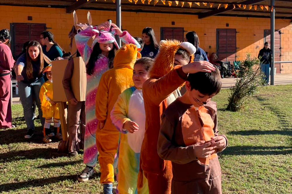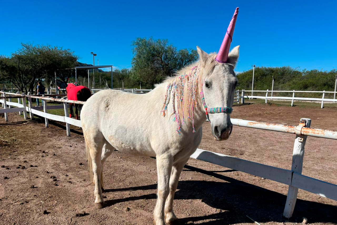 La Escuela Provincial de Equinoterapia celebró el Día del Animal con un emotivo evento el sábado por la tarde. La jornada comenzó con un llamativo desfile de los caballos, que lucieron disfraces creativos y coloridos para representar a los personajes favoritos de los niños que asisten a la institución.