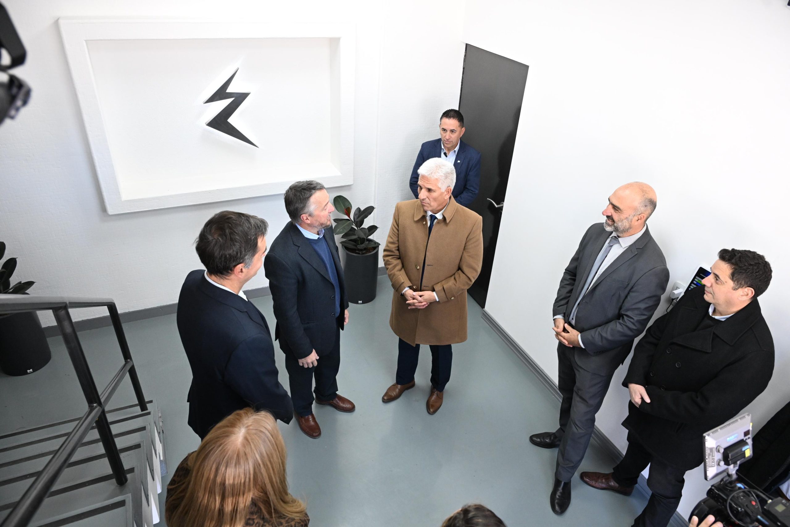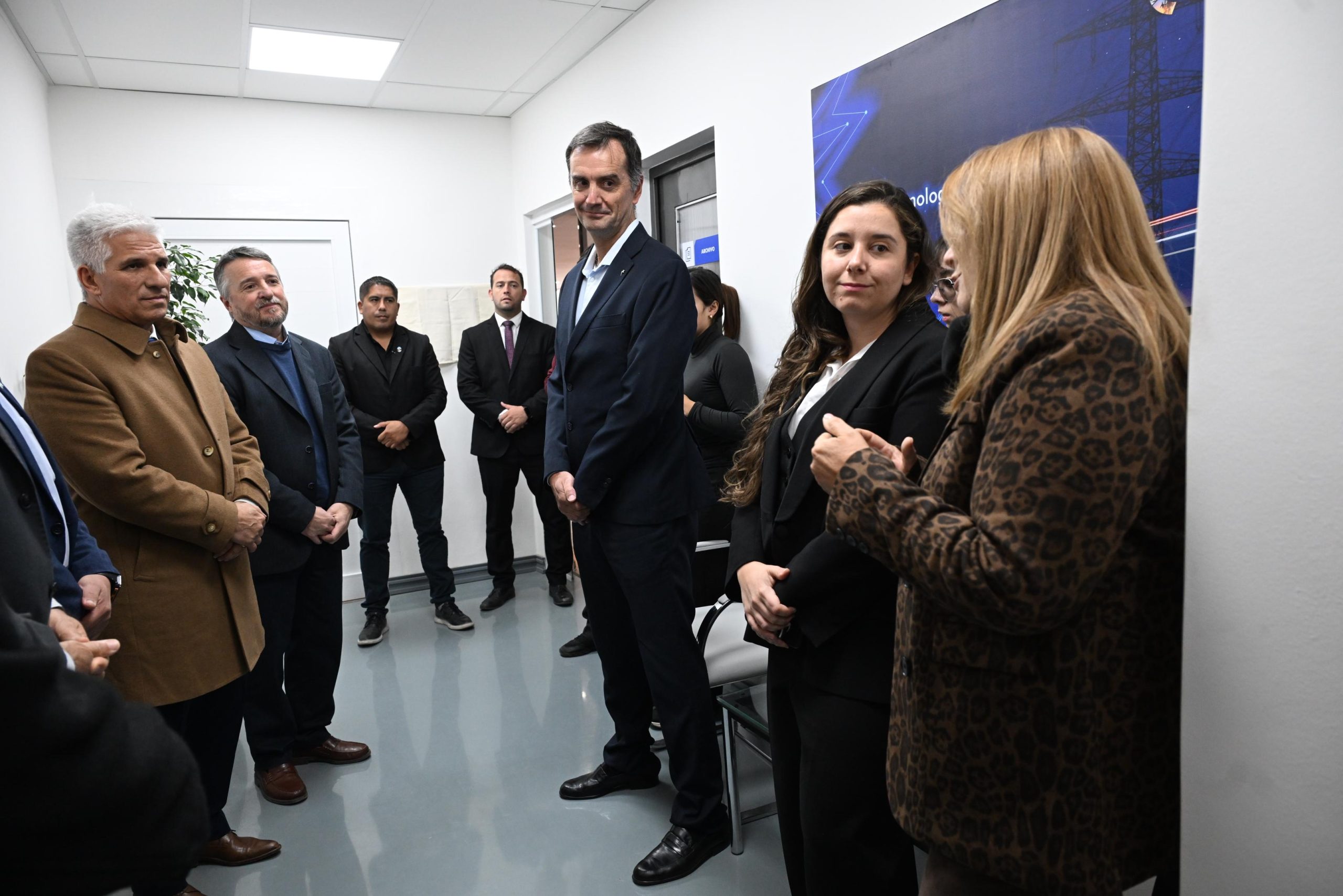 El Mandatario fue recibido por la integrante del directorio, Pía Rovella; el gerente general, Martín Lombardini; la gerente de Relaciones Institucionales, Mariela Quiroga Gil; y el gerente de Tecnología Informática, Cristian Ferrero, quien estuvo a cargo del recorrido por las instalaciones. También estuvo presente el ministro de Desarrollo Productivo, Federico Trombotto.