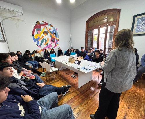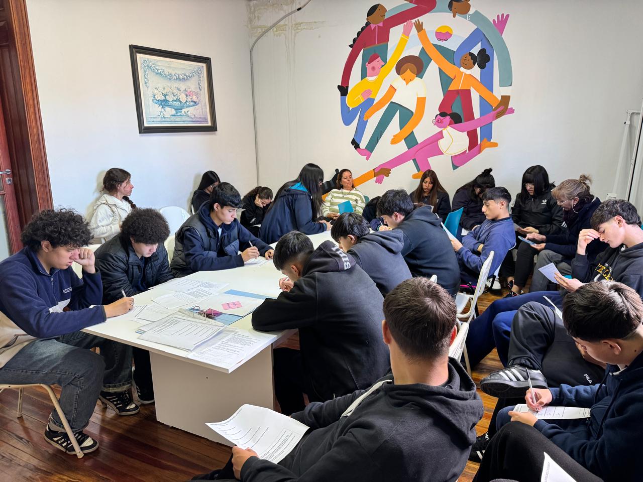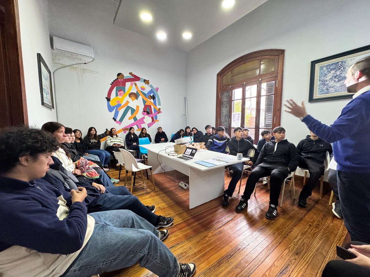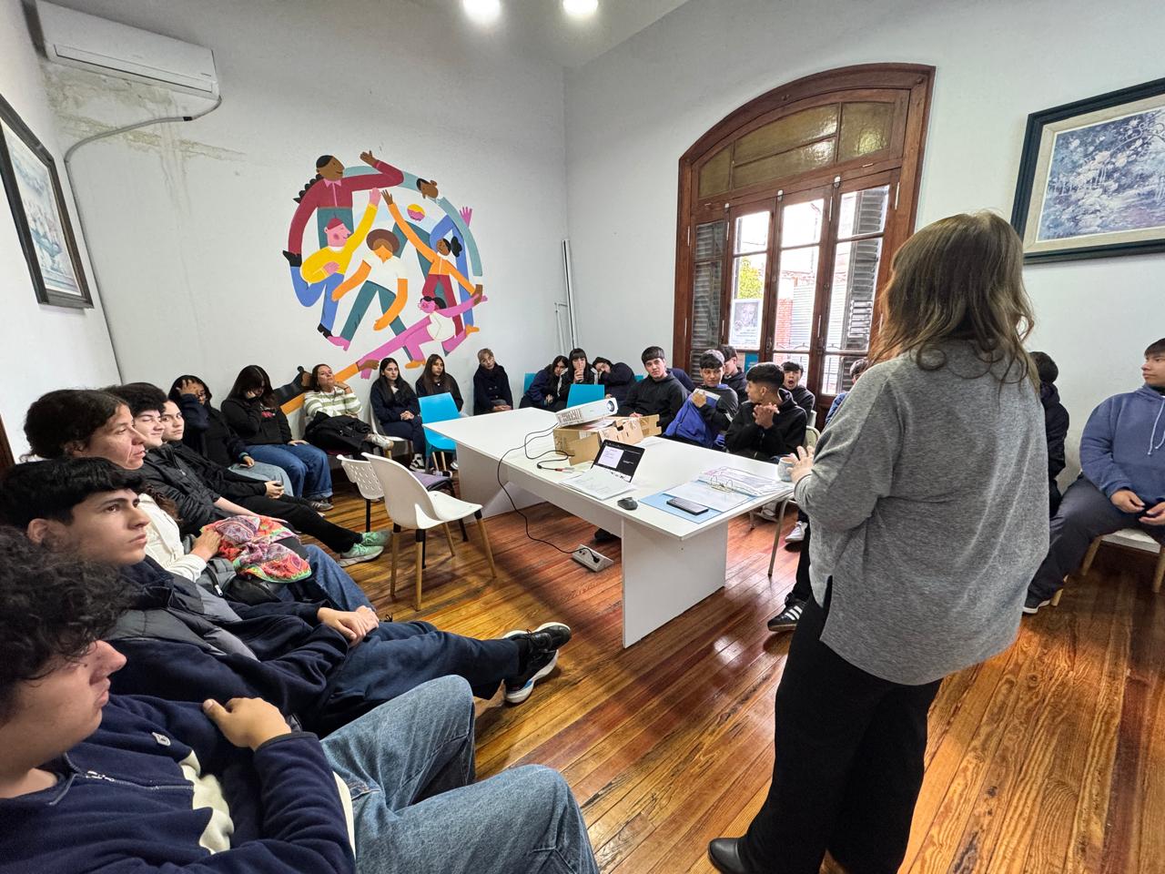 En el espacio desarrollaron una jornada de intercambio sobre temáticas vinculadas a la realidad escolar. Durante el encuentro trabajaron contenidos relacionados al bullying, grooming, sharenting y prevención del suicidio desde la perspectiva de los Derechos Humanos. La propuesta fue generar un espacio abierto, con ejemplos concretos y diálogo directo, donde los estudiantes pudieran participar, preguntar y compartir sus experiencias.