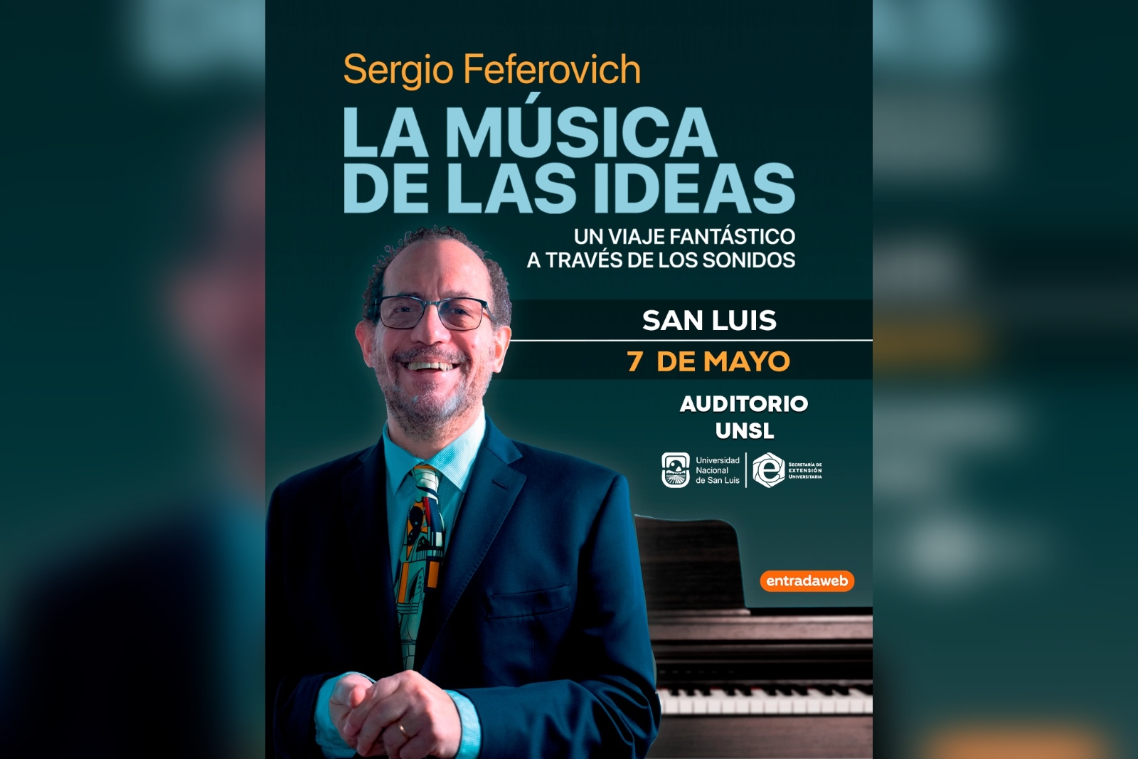 ¿Te imaginás un espectáculo donde te reís, aprendés y hacés música al mismo tiempo?. De eso se trata ‘La Música de las Ideas’, la innovadora y efectiva propuesta del artista Sergio Feferovich que combina charla y concierto, con historias increíbles, humor y participación del público. Presentará su espectáculo el jueves 7 de mayo, a las 21:00, en el Auditorio ‘Mauricio López’ de la UNSL.