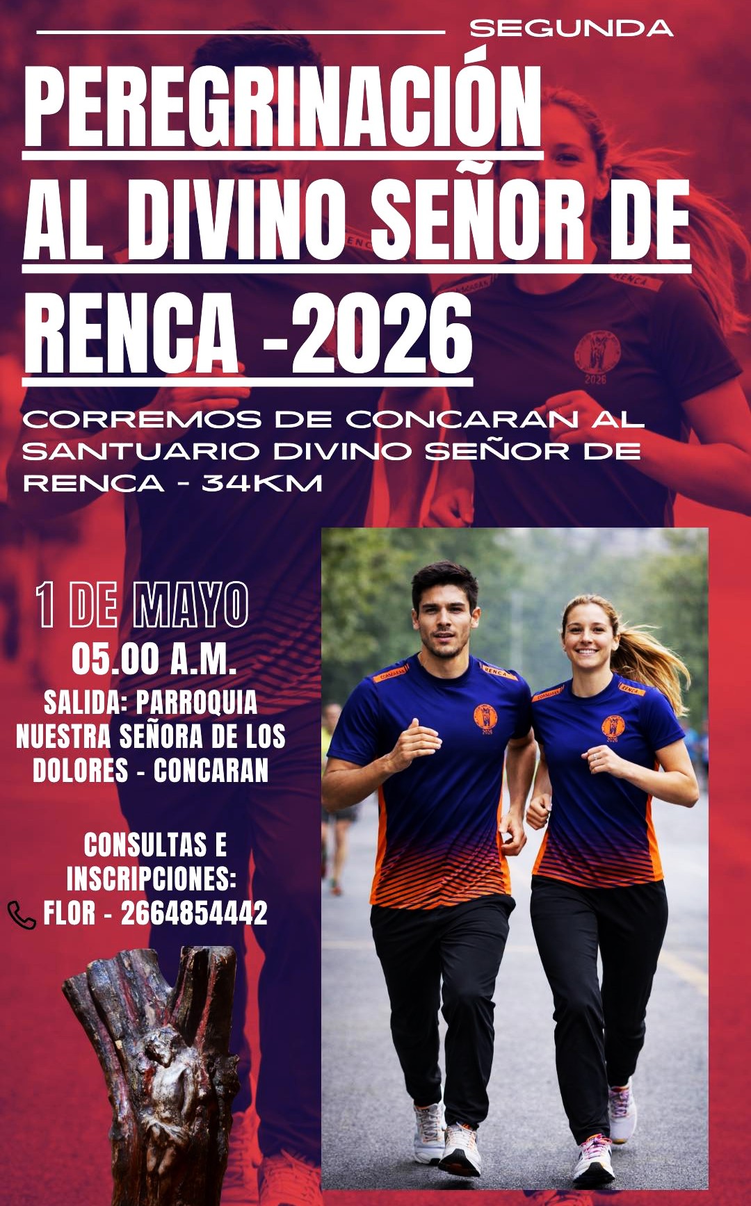 Entre las actividades destacadas, se realizará la segunda edición de la peregrinación atlética al Divino Señor de Renca 2026, de trata de un recorrido de 34 kilómetros, que tendrá lugar el 1° de mayo, con salida a las 5:00 desde la Parroquia Nuestra Señora de los Dolores, en Concarán, con destino al Santuario del Divino Señor de Renca.
