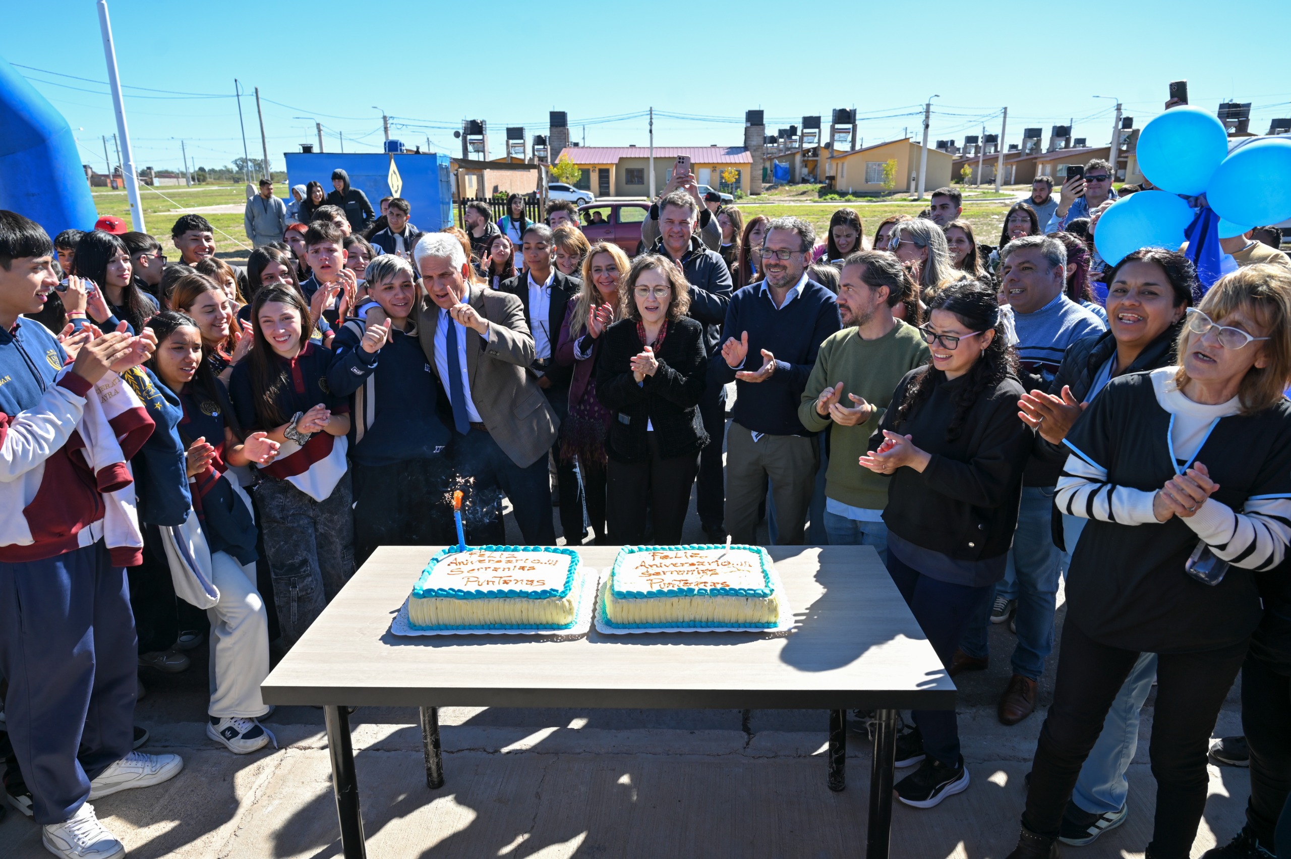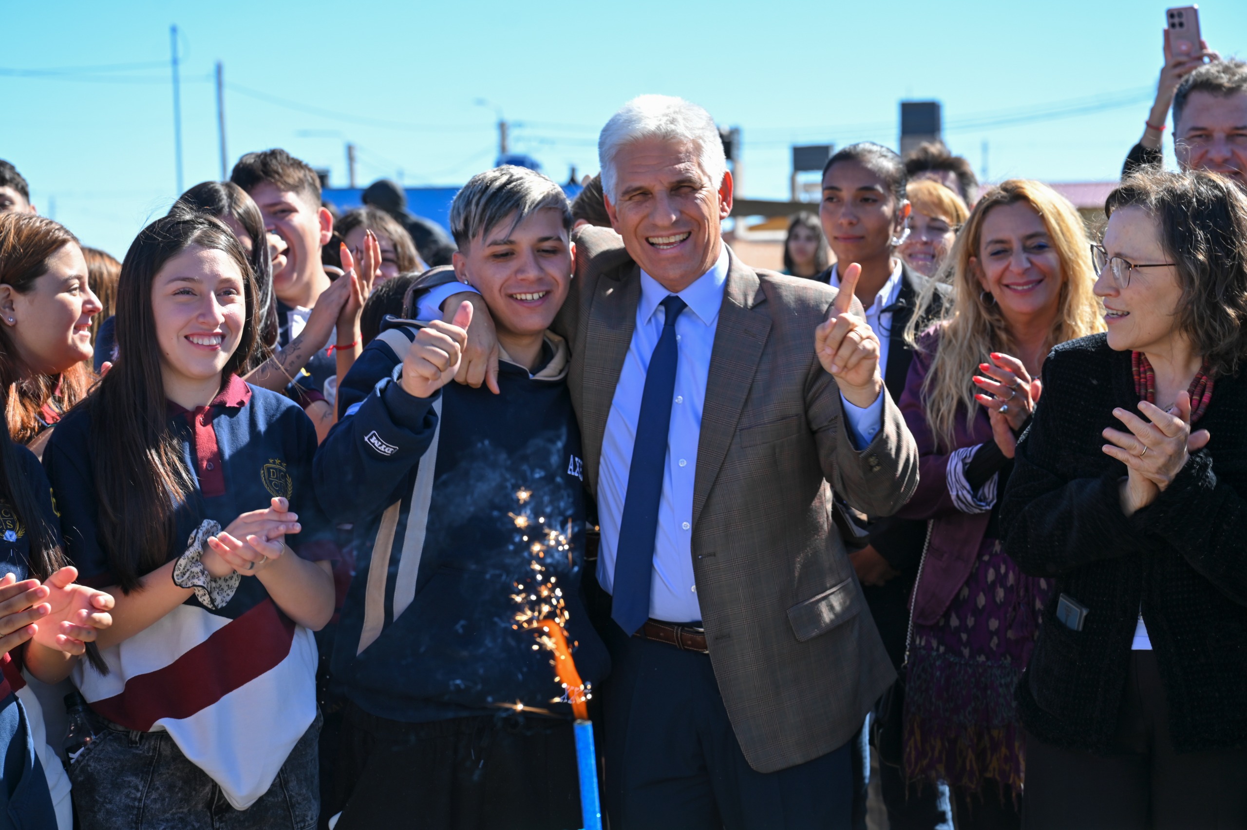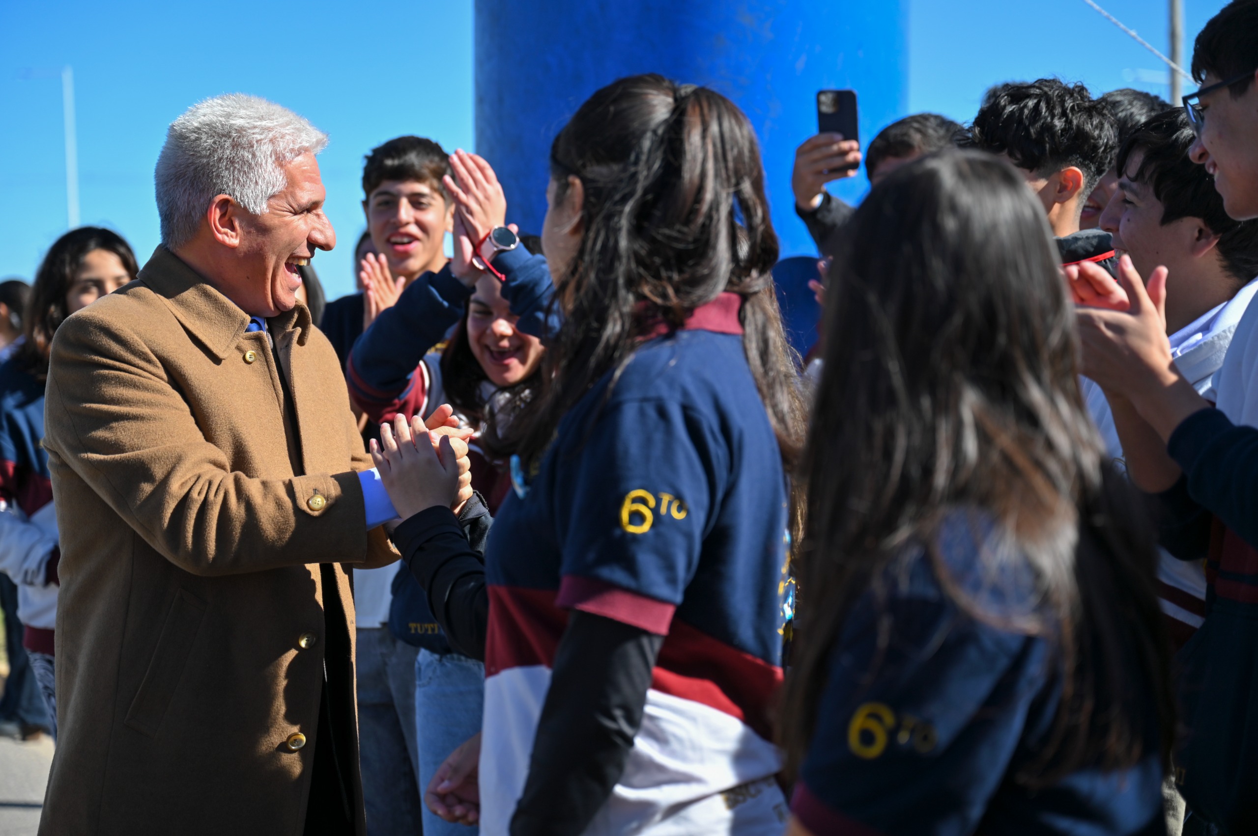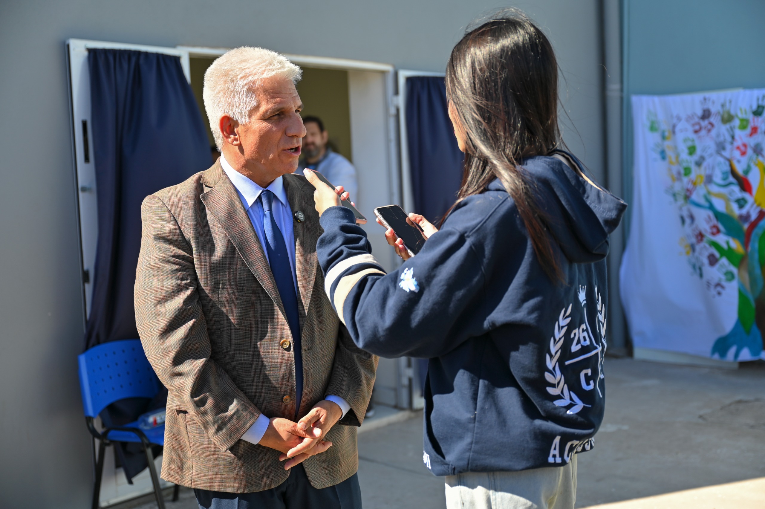 Para el cierre, compartieron una torta. Y el Gobernador saludó y se sacó fotos con vecinos y con las promos ‘Acassios’ y ‘Deuccacios’ e incluso fue entrevistado por estudiantes.