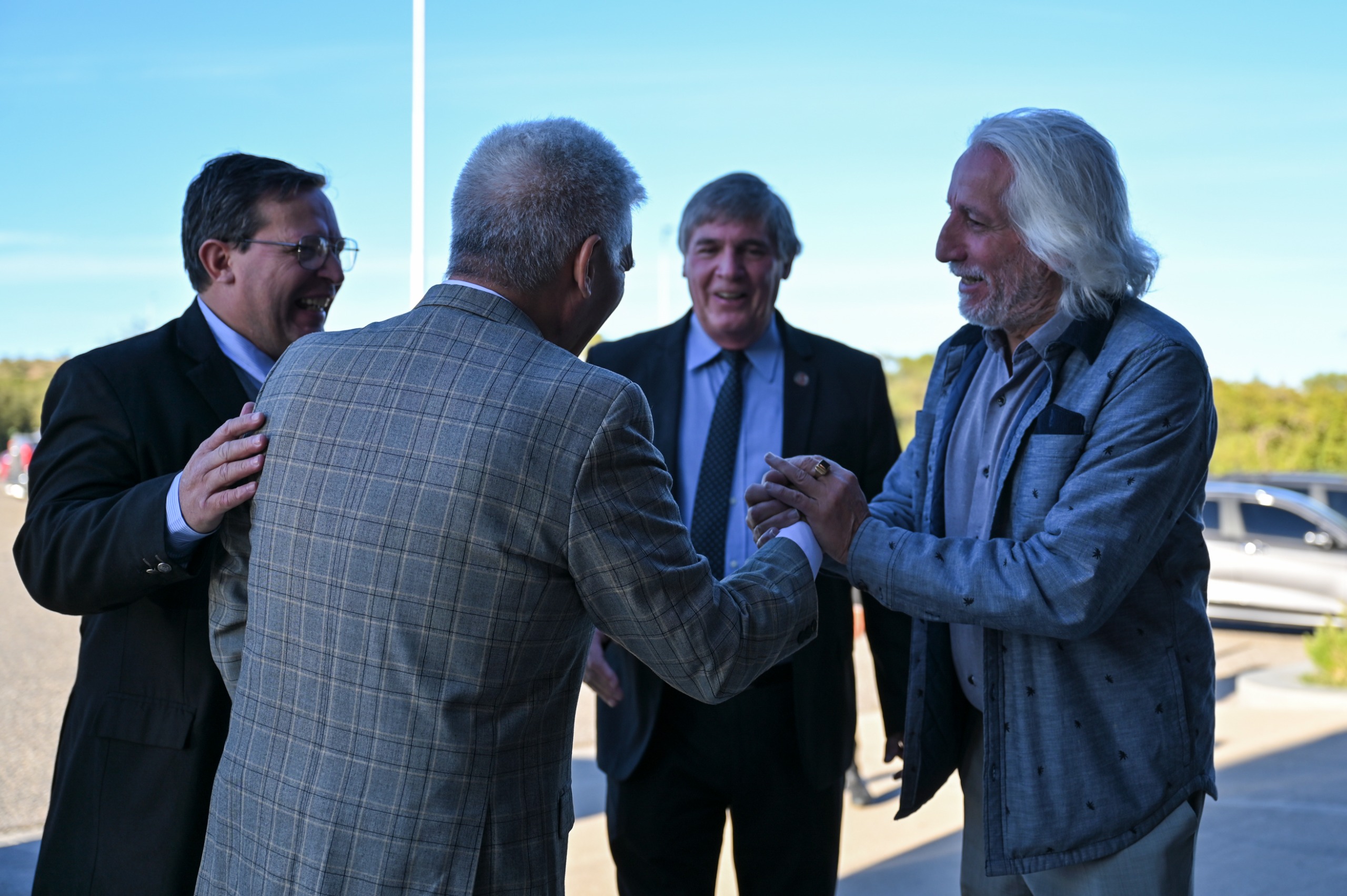 El Gobernador fue recibido por el presidente del Colegio de Agrimensura de San Luis, Pablo Federico Da Rold García; el presidente de la Federación Argentina de Agrimensura, Jorge Luis Soria; la secretaria de ese organismo, Evangelina Canales Cairo; el presidente del Consejo Federal de Catastro, Juan Pablo Quatropani, y el director de Catastro y Tierras Fiscales de San Luis, Darío Crivello.