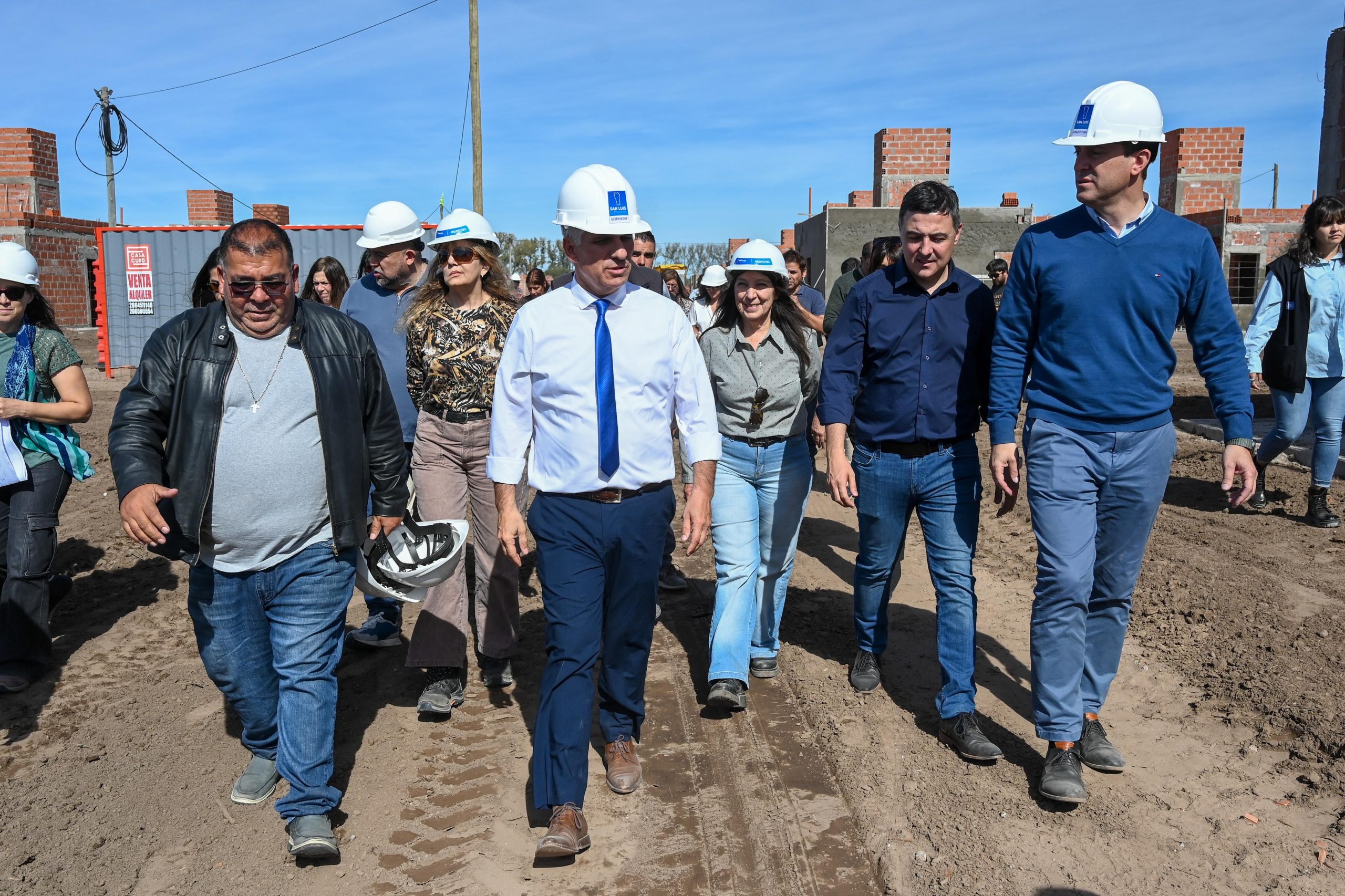Durante su agenda de trabajo de los jueves, el gobernador Claudio Poggi recorrió las distintas obras de viviendas en ejecución en Villa Mercedes que lleva adelante el Ejecutivo provincial a través del programa ‘Tenemos Futuro’, donde supervisó el desarrollo de los trabajos, dialogó con los obreros y se interiorizó sobre el ritmo de las construcciones en distintos barrios.