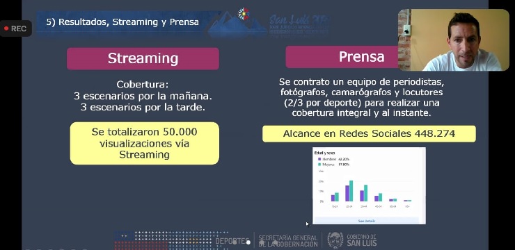 San Luis fue quien dio inicio a la primera jornada desarrollando una evaluación de los Juegos como sede y organizador, donde el informe, a cargo del jefe del Comité Técnico, Gabriel Rivero y jefe del Comité Ejecutivo, Agustín Alessio; se basó en seis ejes fundamentales para el desarrollo de estos Juegos. Estos ejes fueron: 1) La hotelería, comida y transporte; 2) Salud, protocolo y seguros; 3) sistema de inscripción / Página Web; 4) lugares de competencia y montaje de escenarios; 5) resultados, streaming y cobertura de prensa y 6) valor agregado y legado.